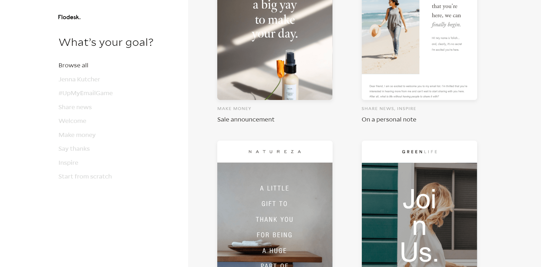 I would argue that Flodesk’s newsletter templates are where the company shines the most. With Flodesk you have access to dozens of stunning, professionally designed templates. These templates are all chic, modern looking, and even artistic, unlike many of the generic, dull templates that you get with other email marketing platforms.